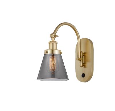 This 1 light Sconce from the Franklin Restoration Cone collection by Innovations Lighting will enhance your home with a perfect mix of form and function. The features include a Satin Gold finish applied by experts. Product Features Include: Brand: Innovations Lighting, Collection: Franklin Restoration Cone, SKU: 918-1W-SG-G63-LED, UPC: 729625073373, Category: Wall Sconce, Finish: Satin Gold, Glass: Plated Smoke, Material: Steel/Cast Brass/Glass, Designer: Bruno Marashlian, Width: 6.25 in., Height: 12.50 in., Extension/Depth: 13.13 in., Backplate/Canopy Width: 4.50 in., Backplate/Canopy Length: 0.00 in., Backplate/Canopy Thickness: 0.75 in., Height from Center of Wall Opening: 2.25 in., Install Position: Reversible/Duo Mount, Weight: 2.80 lb., Warranty: 2 Year Finish, Lifetime Electrical, Bulbs Included: Yes, Bulb Category: LED, Primary Bulb(s): 1 x 6.00 watts Medium Base ST64 Vintage, Color Temperature: 2700K, Color Rendering Index: 82.0000, Total Lumens: 600, Voltage: 120, Safety Rating: Damp Location, Title 20 Approved