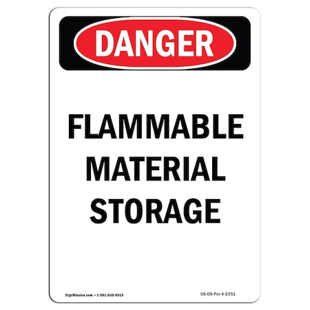 OSHA Danger Sign, Flammable Material Storage, 10in X 7in Decal