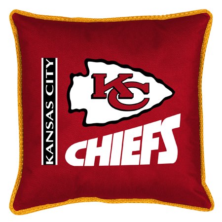 PS4837 <br /> <strong>Features</strong> <br /> <li>NFL collection</li> <li>Material: 100pct Polyester Jersey</li> <li>100pct Polyester cover and fill</li> <li>Spot clean only</li> <li>Style: Contemporary</li> <li>Color: Red</li> <li>Size: Medium (16'' - 20'')</li> <li>Shape: Square</li> <li>Cover Material: Synthetic</li> <li>Fill Material: Polyester/Polyfill</li> <li>Licensed Product: Yes</li> <li>Product Type: Throw pillow</li> <li>League: NFL</li> <li>NFL Team: Kansas City Chiefs</li> <br /> <strong>Dimensions</strong> <br /> <li>Overall Height - Top to Bottom: 17 Inches</li> <li>Overall Product Weight: 0.9 Pounds</li> <li>Overall Width - Side to Side: 17 Inches</li>