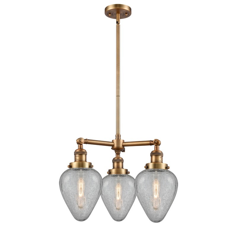 Innovations 207-BB-G165 3 Light Chandelier, Brushed Brass