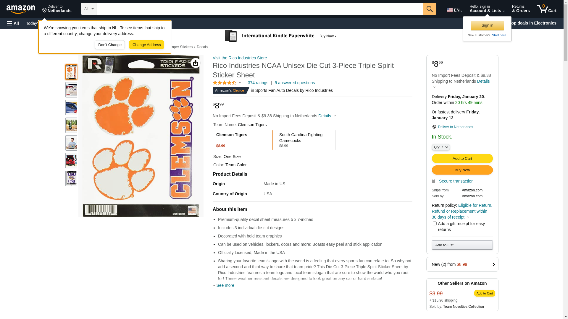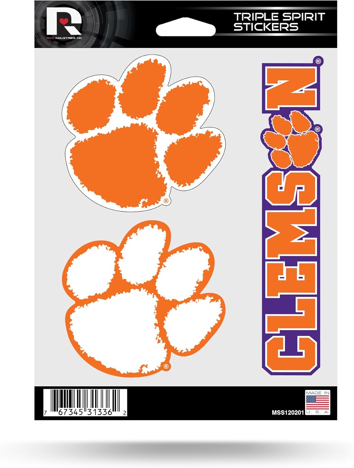 Rico Industries NCAA Clemson Tigers Die Cut 3-Piece Triple Spirit Sticker Sheet, One Size, Primary