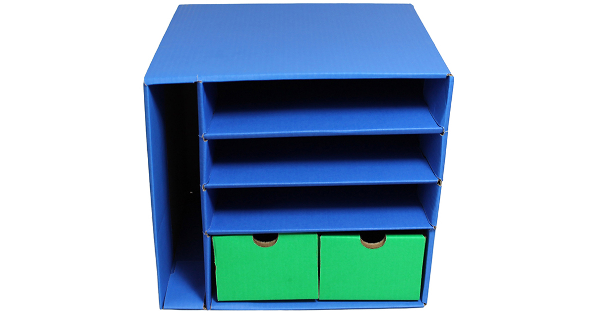 - Corrugated storage unit ideal for classroom centers.