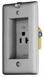 Hubbell Wiring Systems RR201CHSSTR tradeSELECT Clock Hanger/Recessed Receptacle, Tamper-Resistant, 20A, 125V, Stainless Steel