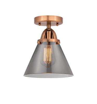 This 1 light Semi-Flush Mount from the Nouveau 2 Large Cone collection by Innovations Lighting will enhance your home with a perfect mix of form and function. The features include a Antique Copper finish applied by experts. Product Features Include: Brand: Innovations Lighting, Collection: Nouveau 2 Large Cone, SKU: 288-1C-AC-G43, UPC: 729625000447, Category: Semi-Flush Mount, Finish: Antique Copper, Glass: Plated Smoke, Material: Steel / Cast Brass / Glass, Designer: Bruno Marashlian, Width: 7.75 in., Height: 9.50 in., Diameter: 7.75 in., Backplate/Canopy Width: 4.50 in., Backplate/Canopy Length: 0.00 in., Weight: 2.20 lb., Warranty: 2 Year Finish, Lifetime Electrical, Bulbs Included: Yes, Bulb Category: Incandescent, Primary Bulb(s): 1 x 60.00 watts Medium ST64 Vintage, Color Temperature: 2200, Color Rendering Index: 99.9000, Total Lumens: 220, Voltage: 120V, Safety Rating: UL ETL Damp