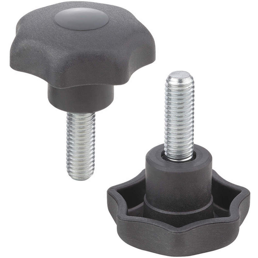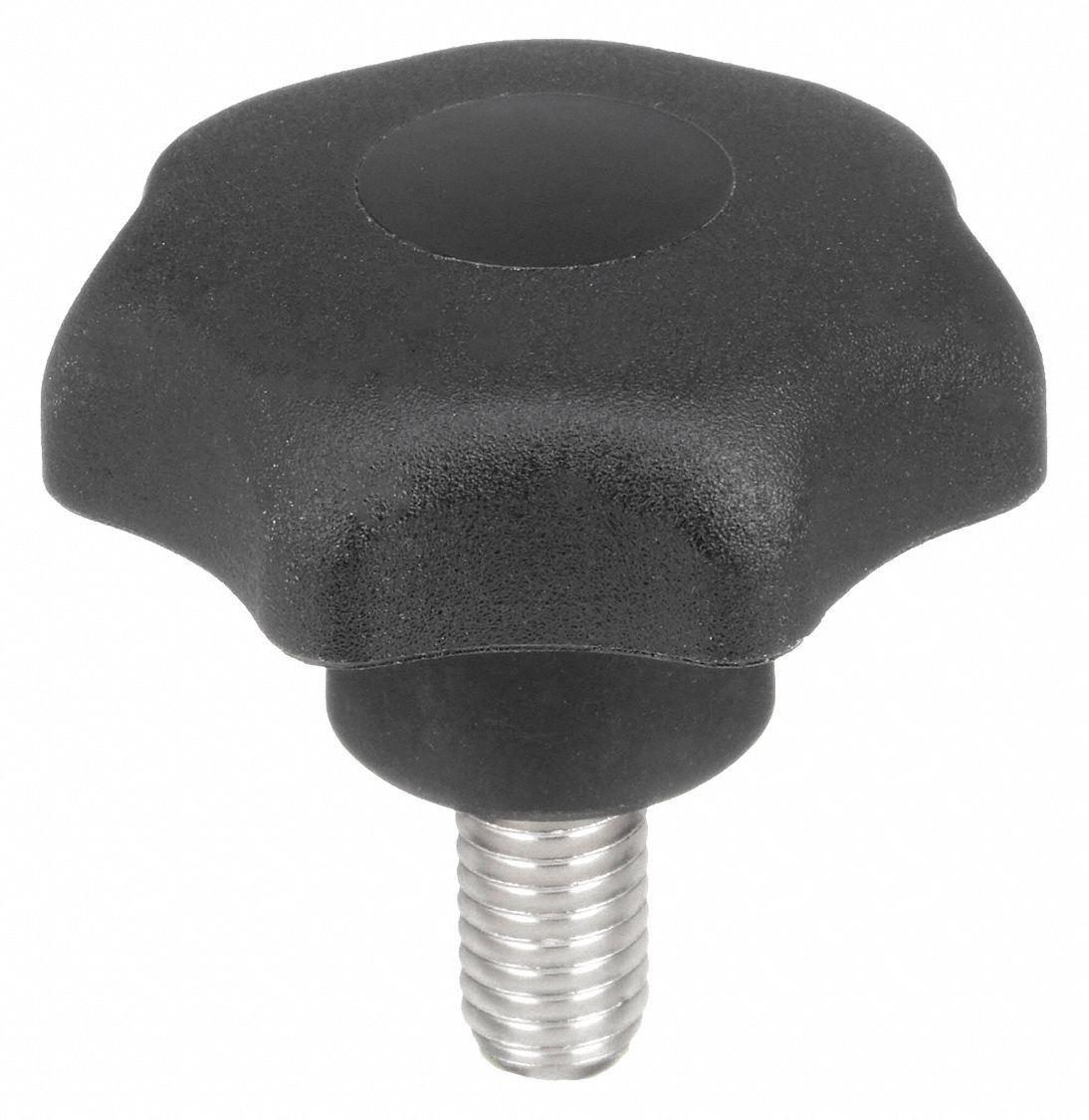 - Price For: Each Includes: - Standards: - Finish: Matte Black Fits Hand Wheel Dia. (In.): - Tap Type (In.): - Thread Size: M8 Knob Type: Star Grip Material: Thermoplastic Item: Star Grip Knob Type: External Thread Style: SS Insert Diameter: 1.57" Screw Length: 0.78" Overall Length: 1.77" Country of Origin (subject to change): Germany
