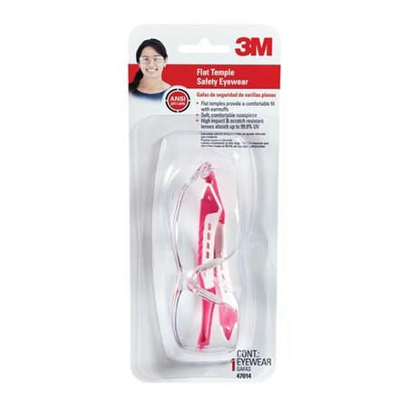 3M Flat Temple Safety Eyewear with Scratch Resistant Lens, White/Pink Frame (47014-WV6)