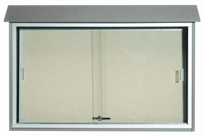 Aarco PLDS3045-2 Sliding Door Message Centers, Light Gray Outdoor Plastic Lumber with Vinyl Tackboard, Crystal-Clear Sliding Door, 45”(W) x 30”(H)<br><br>Key Features:<br>- Plastic construction stands up to the elements<br>- Sliding door for easy access<br>- Vinyl coated cork tackboard<br>- Made of recycled material<br><br>Specifications:<br>- Board material: Vinyl<br>- Board type: Tack<br>- Door style: Sliding<br>- Frame color: Gray<br>- Frame material: Plastic<br>- Light: Without Light<br>- Shape: Rectangle<br>- Type: Message Centers<br>- Usage: Outdoor<br>- Dimensions: 45”(W) x 30”(H)<br>- Weight: 75 lbs<br><br>