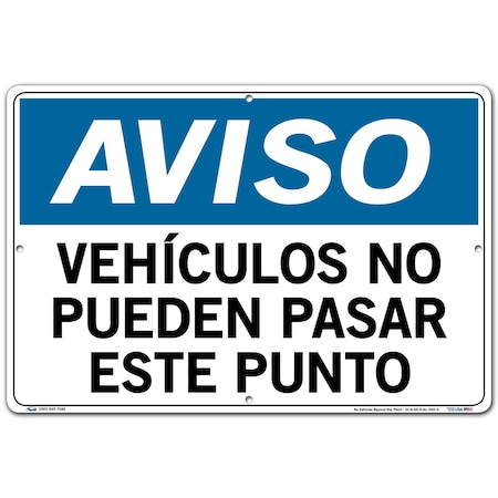 Vestil Spanish Notice Sign SI-N-69-D-AL-040-S Aluminum 0.04 Overall Size 18.5"W x 12.5"H. VEHÍCULOS NO PUEDEN PASAR ESTE Punto, (No Vehicles Beyond This Point).