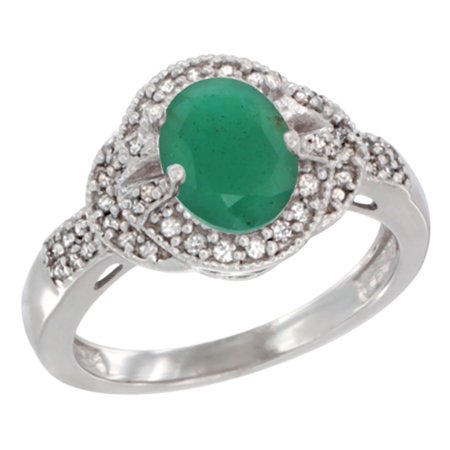 10K White Gold Natural HQ Emerald Ring Oval 8x6 mm Diamond Accent, sizes 5 - 10