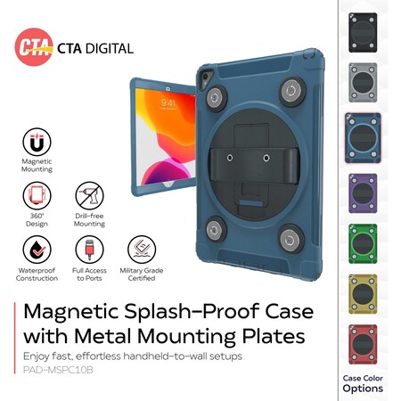Magnetic Splash-Proof Case - CTA Magnetic Splash-Proof Device Case with Metal Mounting Plates for iPad 7th/ 8th/ 9th Gen 10.2”, iPad Air 4, iPad Pro 10.5:, and More (PAD-MSPC10B) – Blue