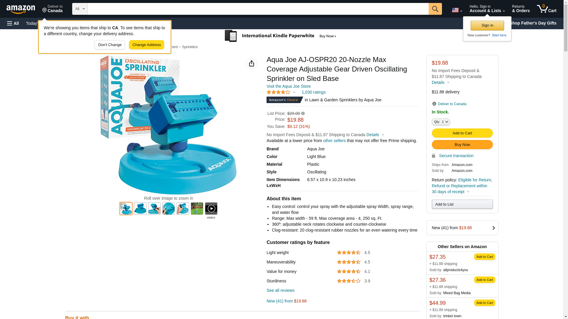 Aqua Joe Oscillating Sprinkler, AJOSPR20