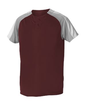 Alleson Athletic B31385535 Two Button Henley Baseball Jersey, Maroon, Grey & White - Large