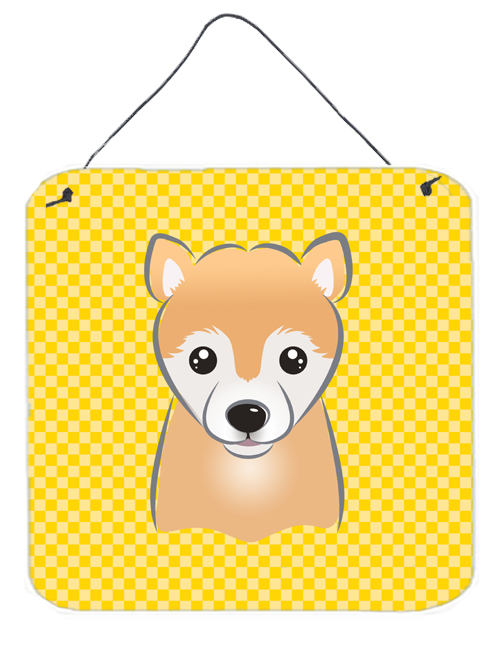 Caroline's Treasures BB1133DS66 Yellow Checkered Shiba Inu Wall or Door Hanging Prints Aluminum Metal Sign Kitchen Wall Bar Bathroom Plaque Home Decor, 6x6, Multicolor