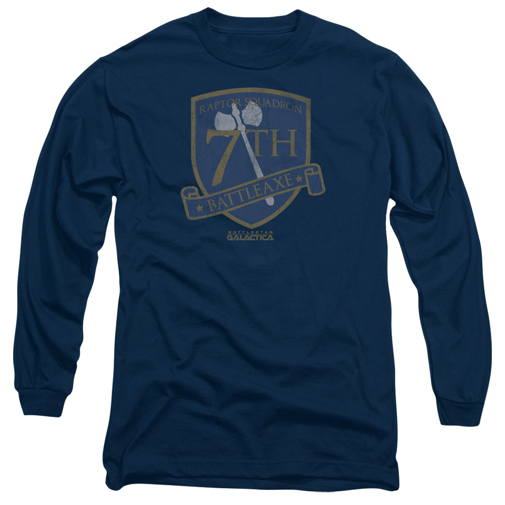 Trevco BSG281-AL-4 BSG & Battleaxe Badge Adult Cotton Long Sleeve 18-1 T-Shirt, Navy - Extra Large