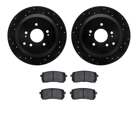 Dynamic Friction Company Rear Brake Rotors Drilled and Slotted Black with 5000 Advanced Brake Pads - 8502-03080