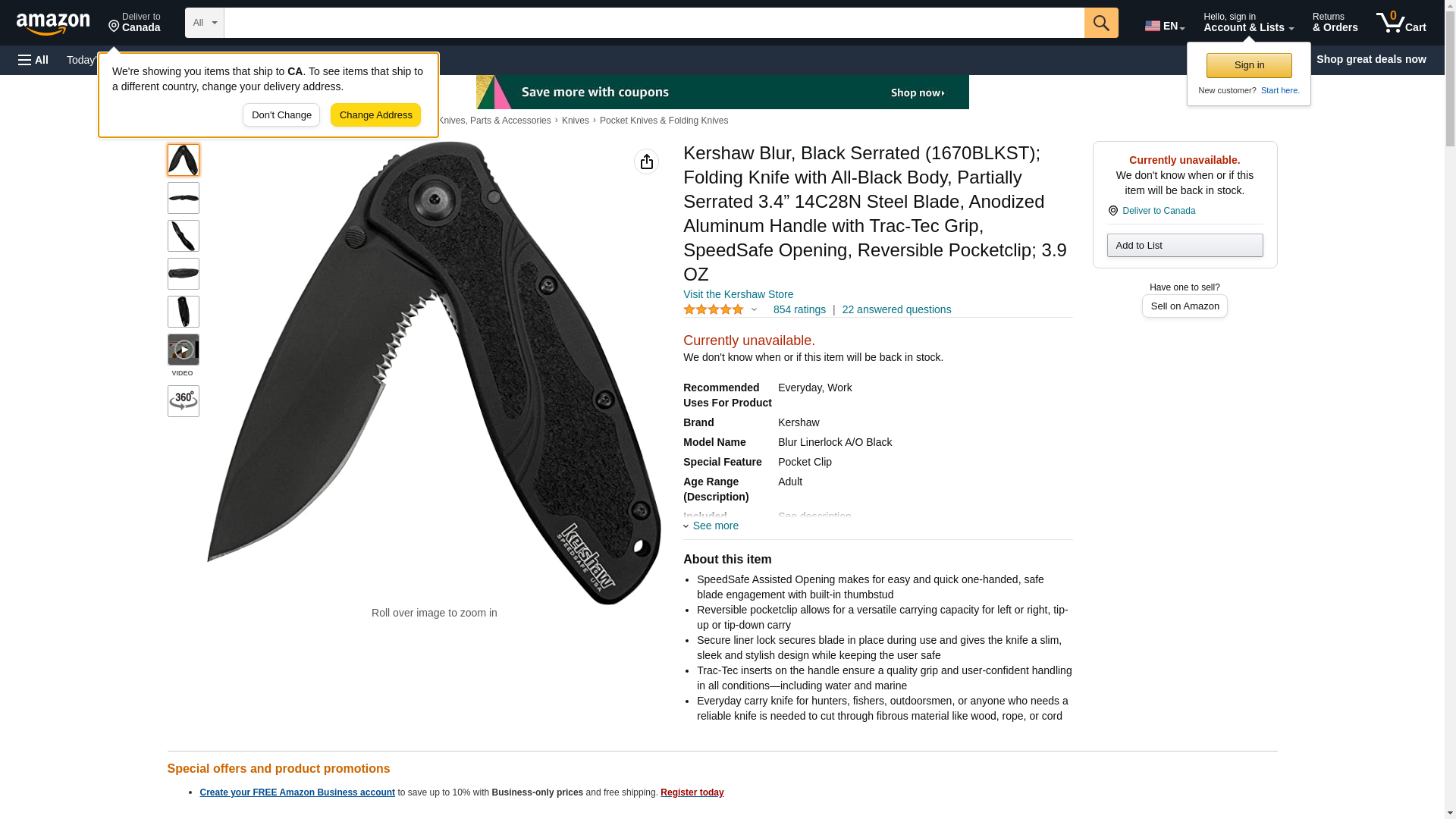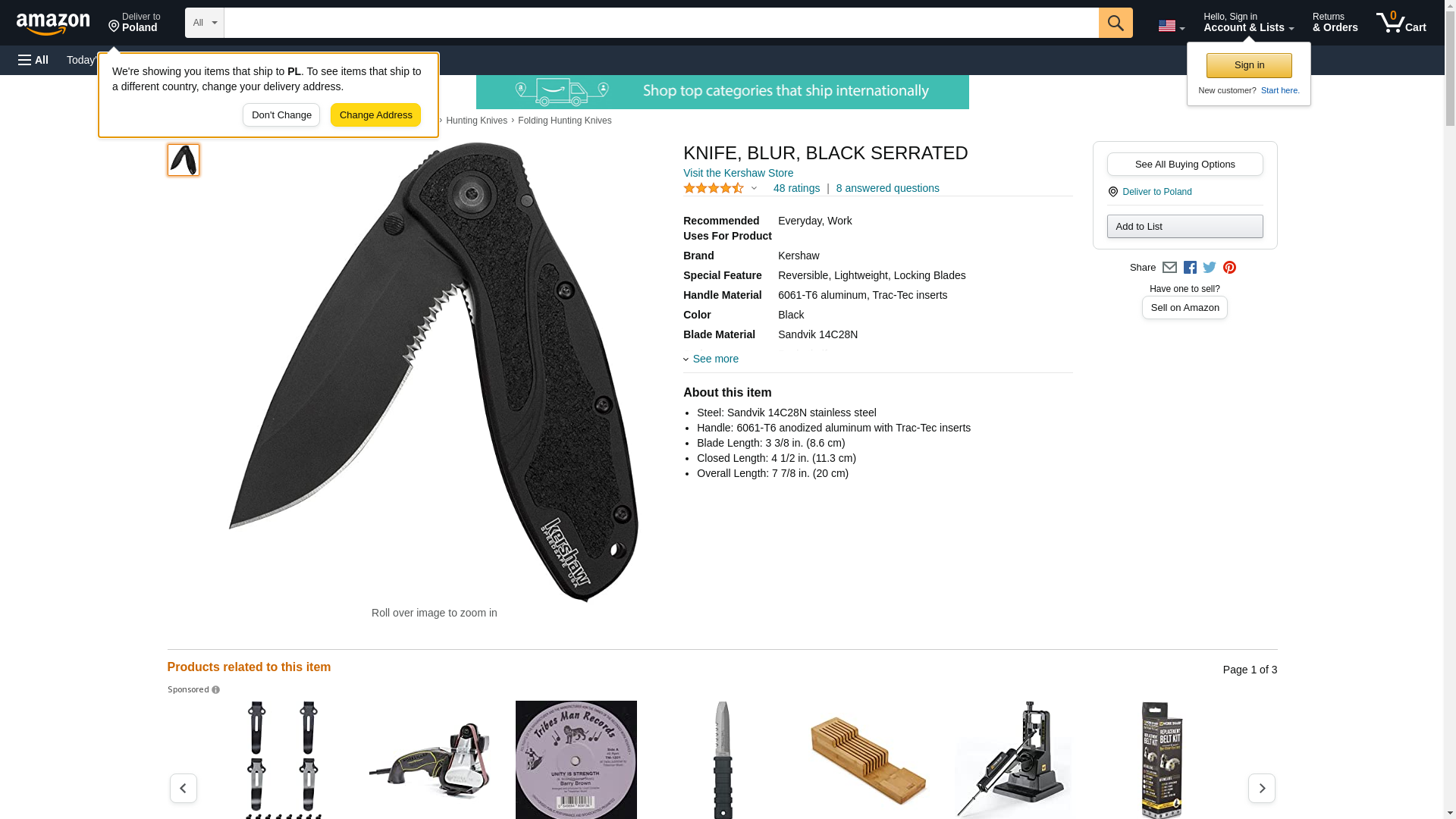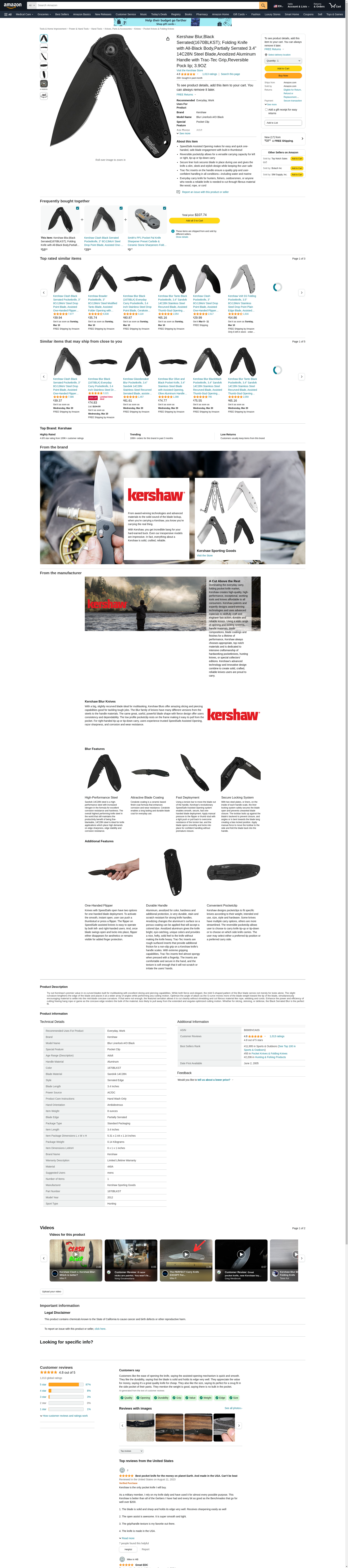 | Feature | Kershaw BLACK BLUR 1670BLKST Cutting Knife - 3.39" |