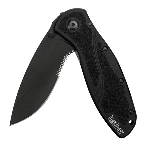 For top performance and attention-getting style, its the Kershaw Ken Onion Blur series. Blurs feature premium 13C26 stainless-steel blades for strength and corrosion resistance. Choose standard or partially serrated blades. Blurs are SpeedSafe equipped for smooth, one-handed opening. The anodized aluminum handles are durable and lightweight. For extra traction and a secure grip, the handles are outfitted with Trac-Tec inserts. The rough Trac-Tec material provides a non-slip grip even in wet and slippery conditions. Ideal for extreme or everyday situations, the Blur series offers power and performance. New for 2007, weve added a Stone Washed Blur with its terrific handle look and S30V stainless-steel blade for toughness and ease of sharpening. Blade length: 3 3/8 partially serratedClosed length: 4 1/2 Steel: Sandvik 13C26 stainless-steel with Tungsten DLC coatingHandle: 6061-T6 anodized aluminum with Trac-Tec insertsPackage includes: Kershaw Blur - Black SerratedWARRANTY: 30 Day Warranty