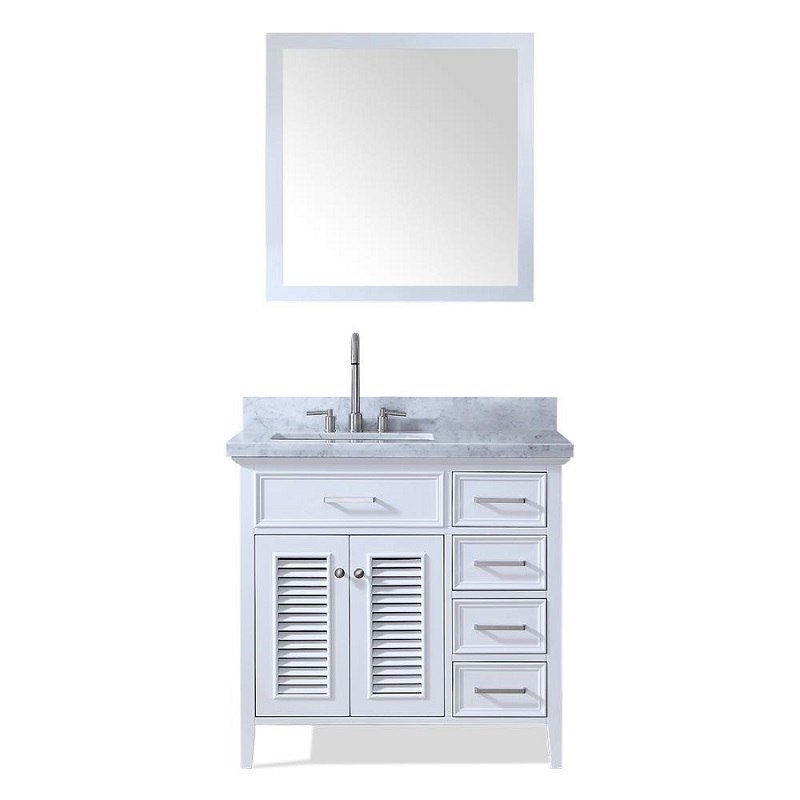 ARIEL D037S-L-WHT KENSINGTON 37 INCH LEFT OFFSET SINGLE SINK VANITY SET, WHITE