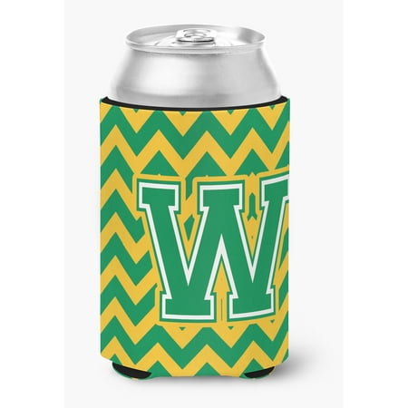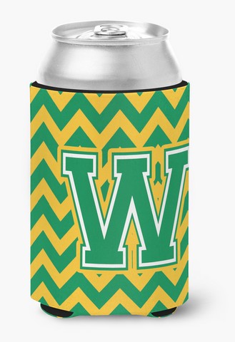 Carolines Treasures CJ1059-WCC Letter W Chevron Green & Gold Can or Bottle Hugger