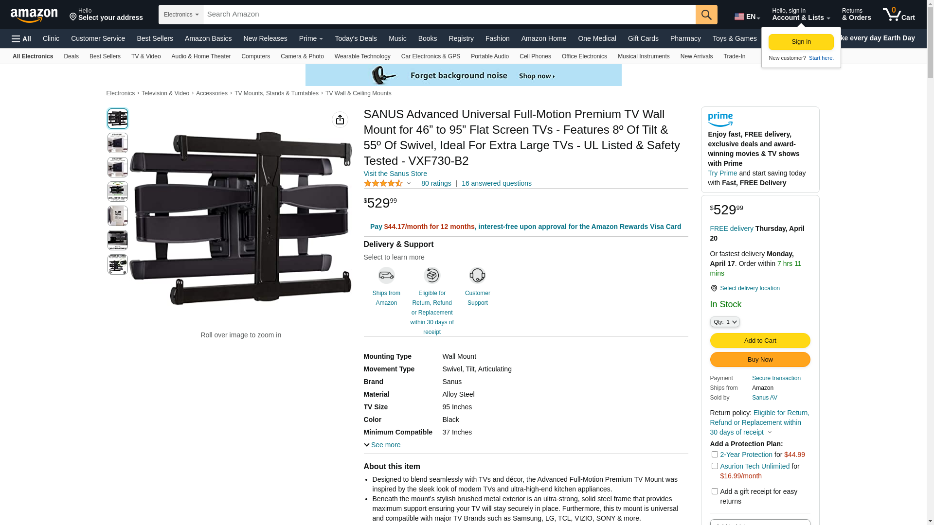 Inspired by the sleek look of modern TVs and ultra-high-end kitchen appliances the Advanced Full Motion Mount is designed to blend seamlessly with TVs and dcor. Featuring a brushed metal exterior the Advanced Full-Motion Mounts are available in two distinct finishes: brushed black stainless with charcoal grey trim and brushed stainless silver with black trim. Beneath the mounts stylish exterior is an ultra-strong solid steel frame that provides maximum support ensuring your TV will stay securely in place. With a lower profile depth than traditional full-motion mounts the Advanced Full-Motion Mount positions TVs closer to the wall creating a more streamlined look. Expertly engineered with FluidMotion design the Advanced Full-Motion Mount provides unparalleled smoothness. Effortlessly extend tilt and swivel your TV regardless of its weight or thickness. The mounts included Steady Set functionality ensures your TV will stay exactly where you want it no drifting shifting or unwanted movement ever. With its simple and intuitive design the Advanced Full-Motion Mount ensures a clear and hassle-free 30-minute installation. What's in the Box VXF730 TV Mount TV screws washers and spacers Mounting instructions Specifications TV Size Range: 46"-95" Maximum TV weight: 175lb Tilt: 8 / -17 Roll: 2 / -2 Swivel: 55 / -55 Universal Mounting: 200x200 through 600x400 Dimensions (W x H x D): 36.73" x 22.03" x 2.46" (30.32" extended)