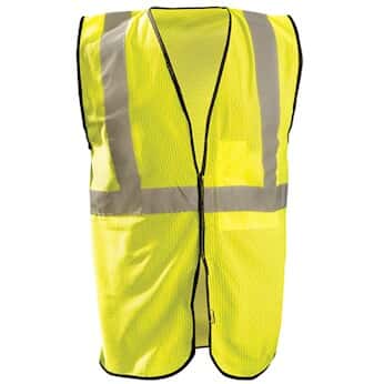 Radnor Yellow Polyester Mesh Economy Class 2 Vest With Front Hook And Loop Closure, 2" Beaded Tape And 1 Outside Pocket. 1 EA 100% Polyester Mesh Hook And Loop Closure2" Silver Beaded Tape1 Outside Pocket. Sizes Available: S/M, L/XL, 2X/3X or 4X/5X..