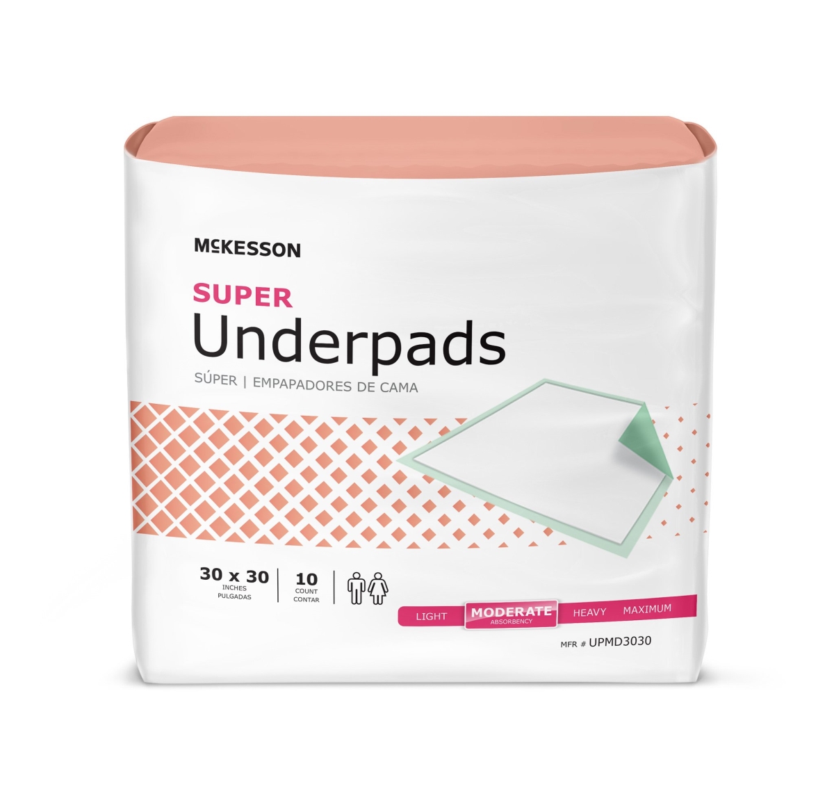 McKesson 73403101 Regular Disposable Moderate-Absorbent Underpad, Green - 30 x 30 in. - Pack of 10