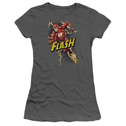 Trevco Jla-Bolt Run Short Sleeve Junior Sheer Tee, Charcoal - Medium