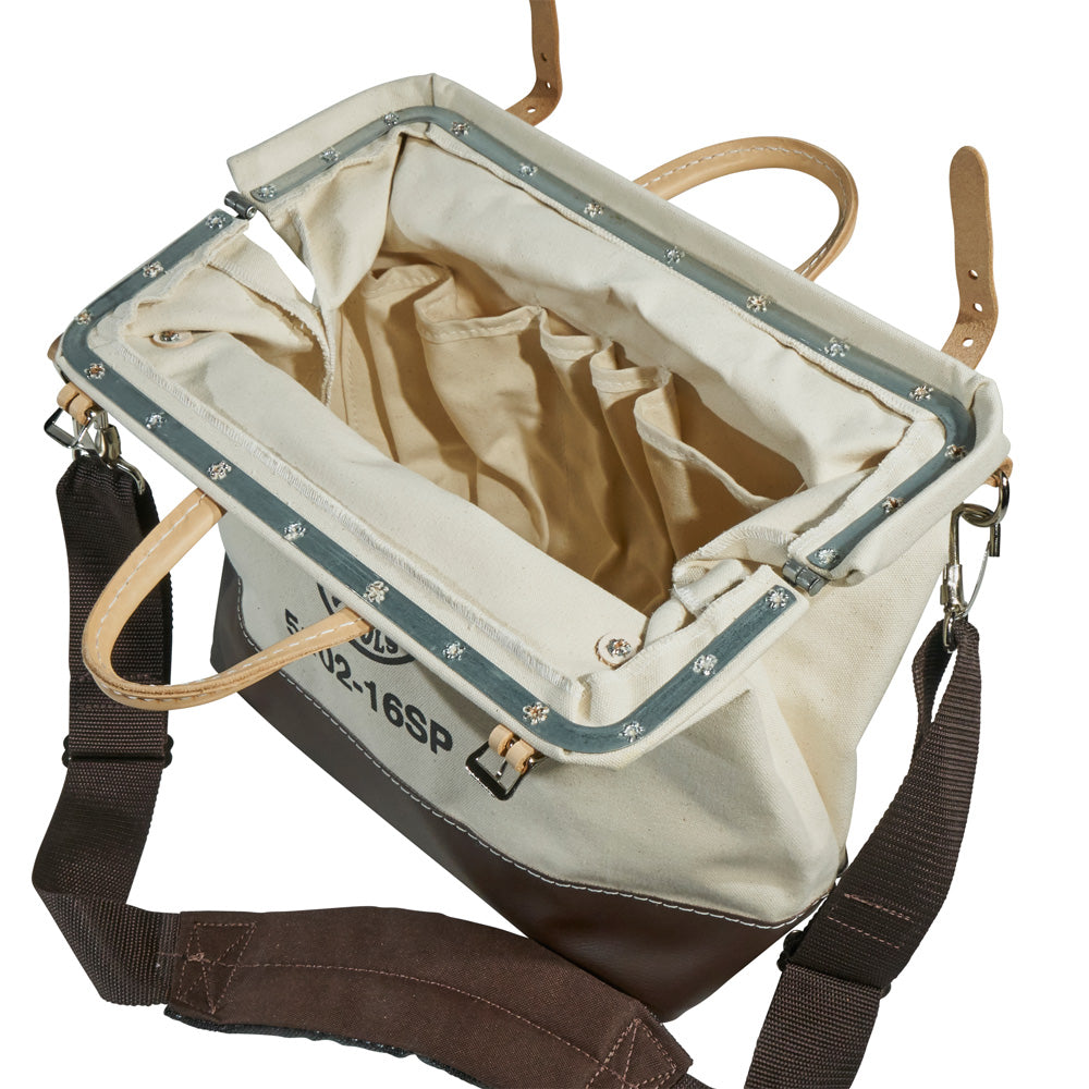 Klein Tools 5102-16SP Deluxe Canvas Tool Bag Made of Natural Canvas with 13 Interior Pockets and Detachable Shoulder Strap, 16-Inch