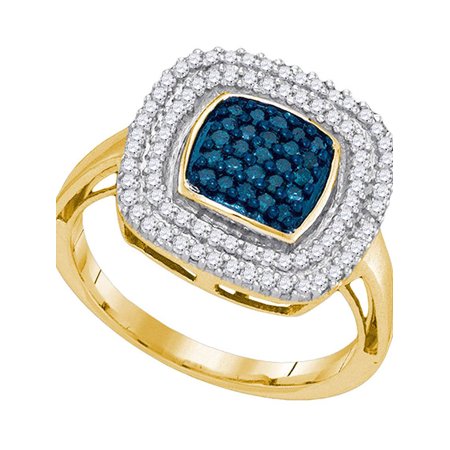10kt Yellow Gold Womens Round Blue Color Enhanced Diamond Square Frame Cluster Ring 1/2 Cttw. †Combined diamond weight of 1/2 carats total weight represents a range of 0.46 - 0.58 cts. t.w.