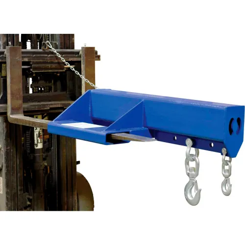- Unique design converts fork trucks into overhead lifting cranes