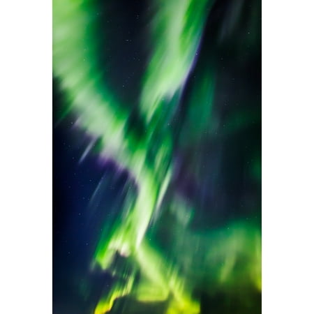 Panoramic Images Stretched Canvas Art - Aurora Borealis or Northern Lights, Iceland - Large 36 x 12 inch Wall Art Decor Size.