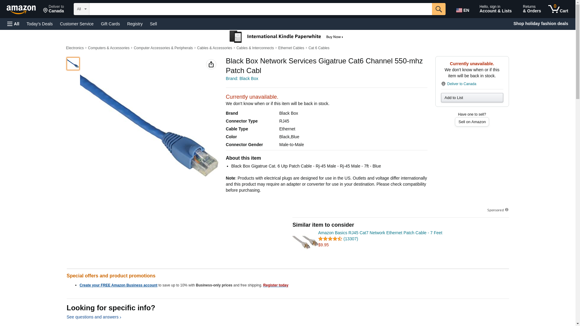 | Feature | Black Box Gigatrue Cat. 6 Utp Patch Cable - Rj-45 Male - Rj-45 Male - 7ft - Blue |