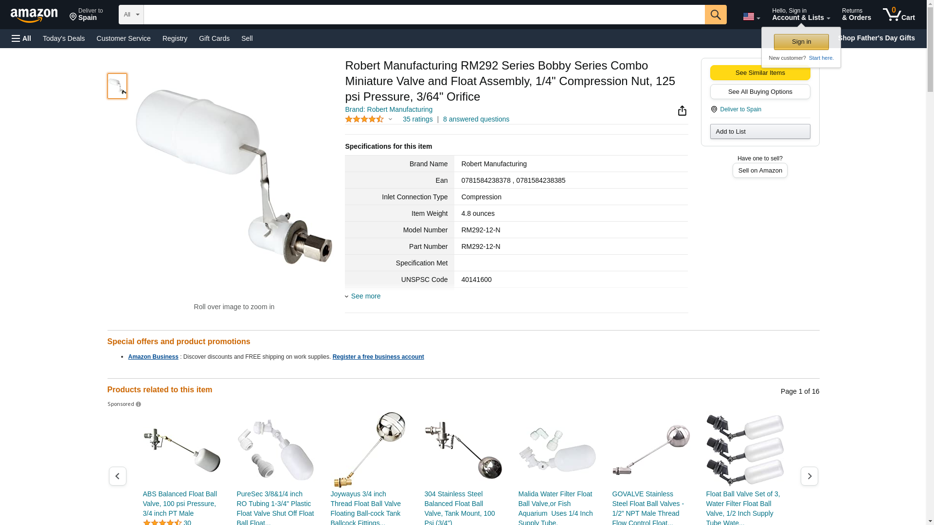 Robert Manufacturing RM292 Series Bobby Series Combo Miniature Valve and Float Assembly, 1/4" Compression Nut, 125 psi Pressure, 3/64" Orifice
