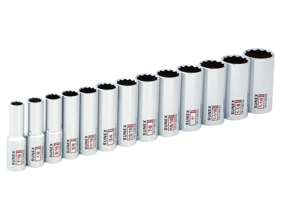 Sunex 28002D 13 Piece 0.5 in. Drive Deep Socket Set- SAE 12 Point Rail