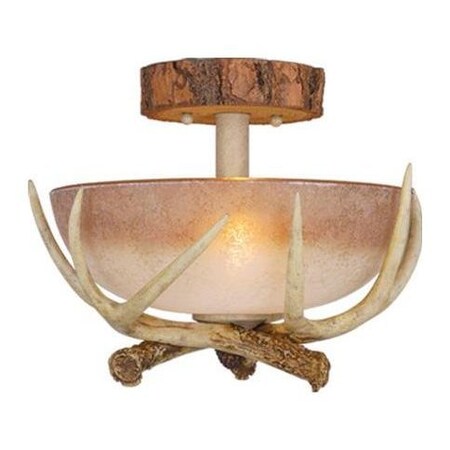 Bring a little nature indoors with the Lodge collection. Its wild look is warm and inviting yet interesting and stylish. The fixtures are designed to replicate the textural elements of pine tree bark and wood. The sculpted antlers are realistically detailed. French scavo glass shades complete the look. Everything combined makes this collection a great choice for a rustic vacation lodge, cabin or a suburban home. It will complement a variety of home styles: anywhere you want to bring in an element of nature. This semi flush mount ceiling light is ideal for hallway, living room, bedroom, Entryway or utility room.
