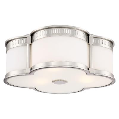 A modern design takes a page from Art Deco personality to deliver a tasteful source of lighting in any space. This LED flushmount ceiling light from the Flush Mount collection by Minka Lavery personifies the concept of elegant simplicity, blending an etched white glass shade with a polished nickel finish steel construction frame. Its quatrefoil silhouette offers charming Mid-Century Modern vibes. Dimmable with a separately purchased electronic low voltage dimmer or LED dimmer, this energy-efficient ceiling light is damp-location rated and averages 30,000 hours of lighting life at three hours of usage per day.