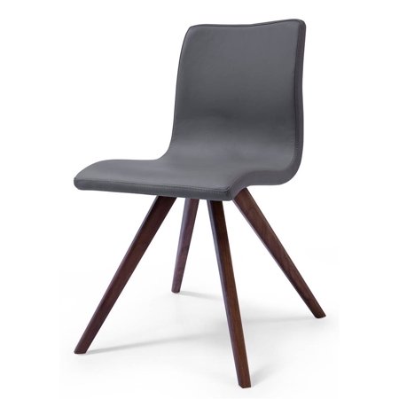 Olga Collection DC1243P-GRY Dining Chair with Waterfall Seat Edge, Natural Walnut Solid Wood Tapered Legs and Faux Leather Uphosltery in Grey Color