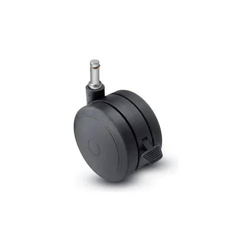 Shepherd Softech Series 60mm Diameter Soft Tread Unhooded Twin Thermoplastic Elastomer Wheel Caster with Brake, 7/16" Diameter x 1-7/16" Length Grip Ring Stem, 100 lbs Capacity, Black