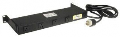 Data/Communication Power Distribution Rack, 1 Rack Units, With Transformer Spacing for Cable Management, 16 AWG Steel, Surge Protection, 4 Front/Rear Outlets, Amp 15, Black