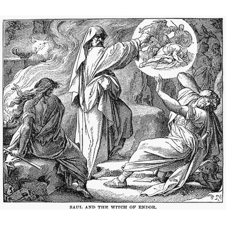 Stretched Canvas Art - Saul & Witch Of Endor. /N(I Samuel 28:11). Wood Engraving, American, 1884. - Large 24 x 36 inch Wall Art Decor Size.