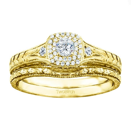 <ul> <li>Engagement Ring sets are made to fit together perfectly.</li> <li>The ring is set with 0.48 carats of Round stones Diamonds (G-H,I2-I3)</li> <li>Item in image is smaller than it appears. It is enlarged to show details.</li> <li>This ring is available in 10K Gold, 14k Gold and sterling Silver. Click TwoBirch above to see it in all of its variations.</li> </ul>