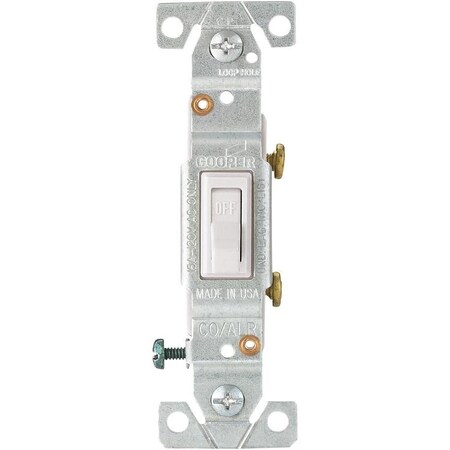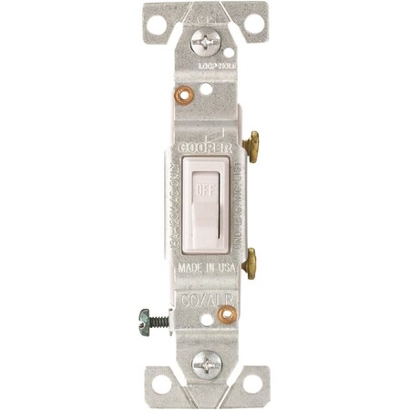 Cooper Wiring Devices 5221-7W-SP-L 15-Amp Standard Grade Copper/Aluminum Single Pole Toggle Switch, White