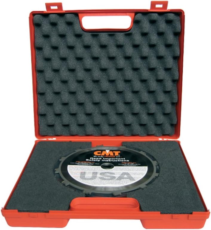 CMT?s Precision Dado Set is designed to set a new standard in performance and is now available in 8? diameter. To be used on underpowered saws. Ideal for any cabinetshop, this dado features: anti-kickback design to reduce the possibility of overfeeding that can occur when cutting mass material, splinter-resistant cuts in veneer plywood, melamine and hard or soft woods. Included are four-tooth chippers that keep the cut flat & virtually free from tear out and 3/32? chipper made especially for undersized plywood. You will also have shim sets to achieve cuts between 1/4? and 29/32?. The negative hook angle allows for a less aggressive and smoother cut. Delivered in Sturdy reusable carrying case.