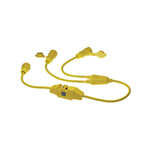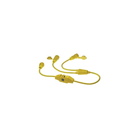 Woodhead 26W47-Y-IN Watertite Wet Location Locking Blade Molded Y Cordset, Inline GFCI, 3 Wires, 2 Poles, NEMA L5-20 Configuration, 12-Gauge SJOW Cord, Yellow, 20A Current, 125V Voltage, 3ft Cord Length