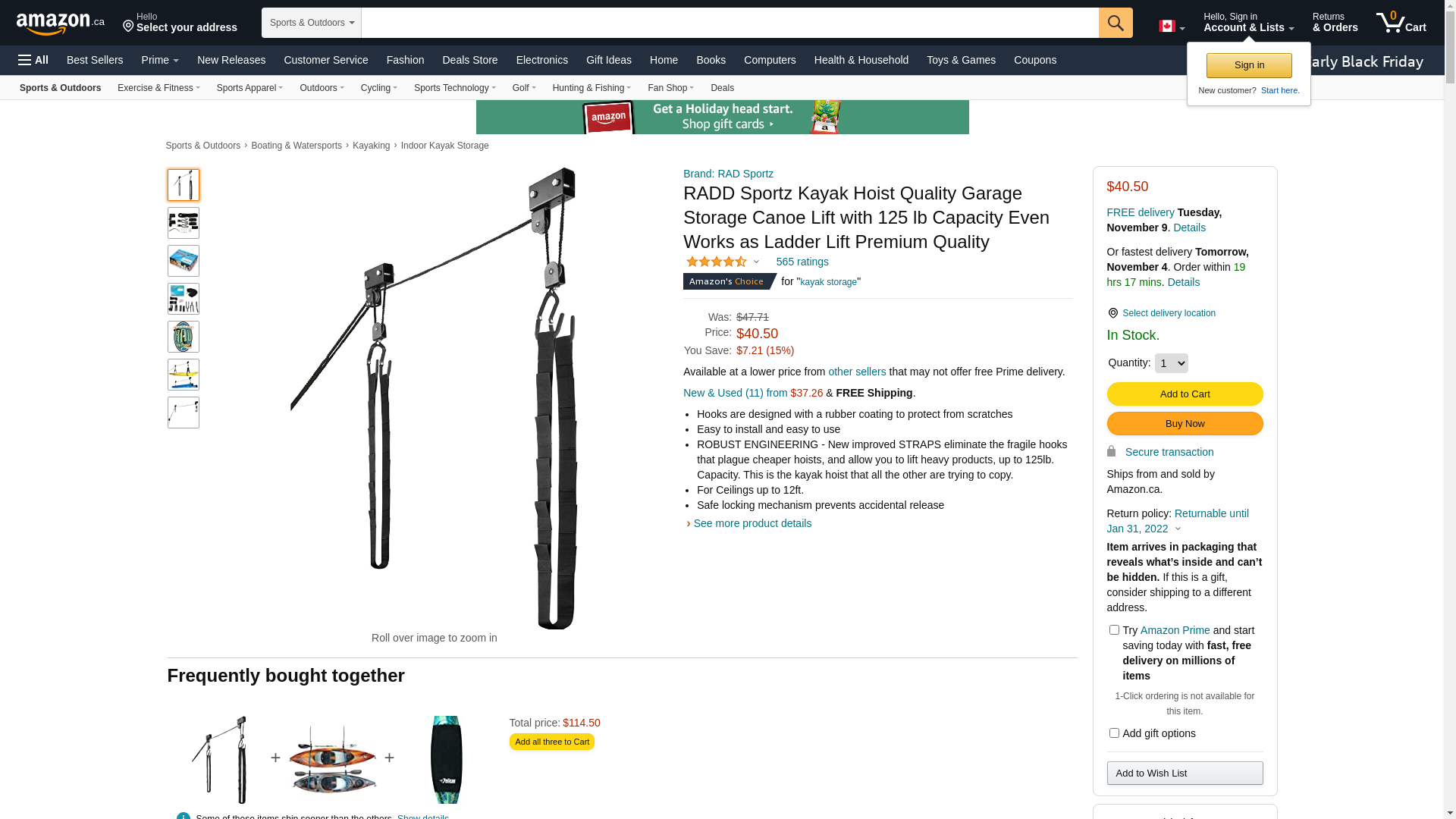 Toolschest.com|Toolschest.com. RAD Sportz 83-DT5002 1003 Kayak & Canoe Lift Hoist for Garage - 125 lbs