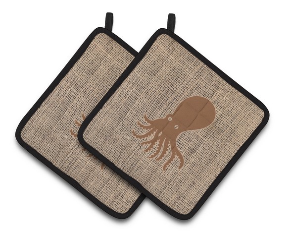 Caroline's Treasures BB1098-BL-BN-PTHD Octopus Burlap and Brown BB1098 Pair of Pot Holders Kitchen Heat Resistant Pot Holders Sets Oven Hot Pads for Cooking Baking BBQ, 7 1/2 x 7 1/2