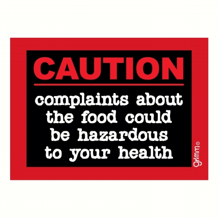 Grimm GRIMMCAUTIONMAG Magnet Humorous Sayings Caution Complaints About The Food Could Be Hazardous To Your Health Note P