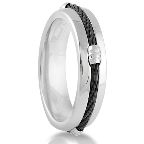 Eternal Bond VJEBTT-019-SZ11 7MM Mens Titanium Black Cable Barrel Ring Wedding Band Comfort Fit -Size 11
