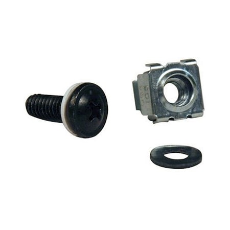 - Includes 50 pcs M6 cage nut zinc, 50 pcs M6 pan head screw and 50 pcs PVC black cup washer.