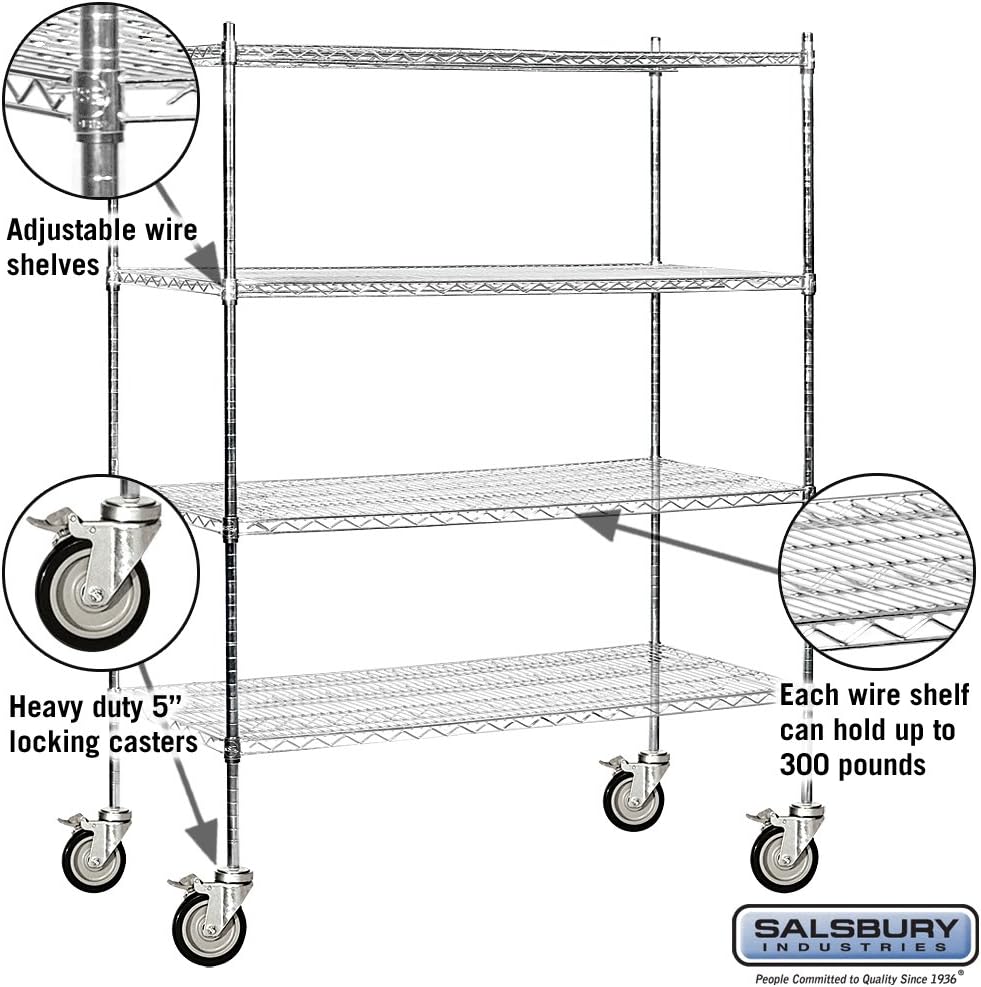 Salsbury Industries Mobile Wire Shelving Unit, 60-Inch Wide by 80-Inch High by 24-Inch Deep, Chrome